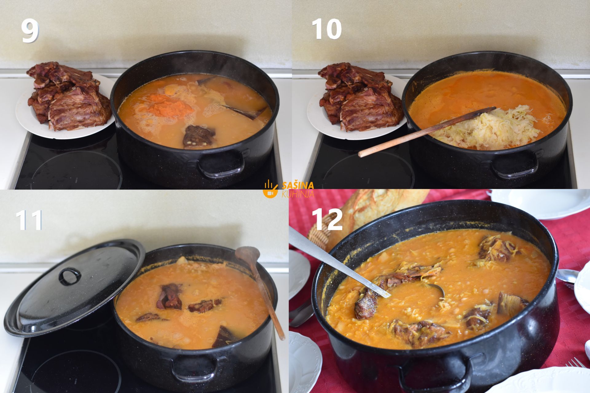 11. Nakon proteka vremena probajte jelo i potrebi dodajte sol ili mješavinu začina. Vratite suha rebra natrag u jelo pa nastavite kuhati petnaestak minuta
