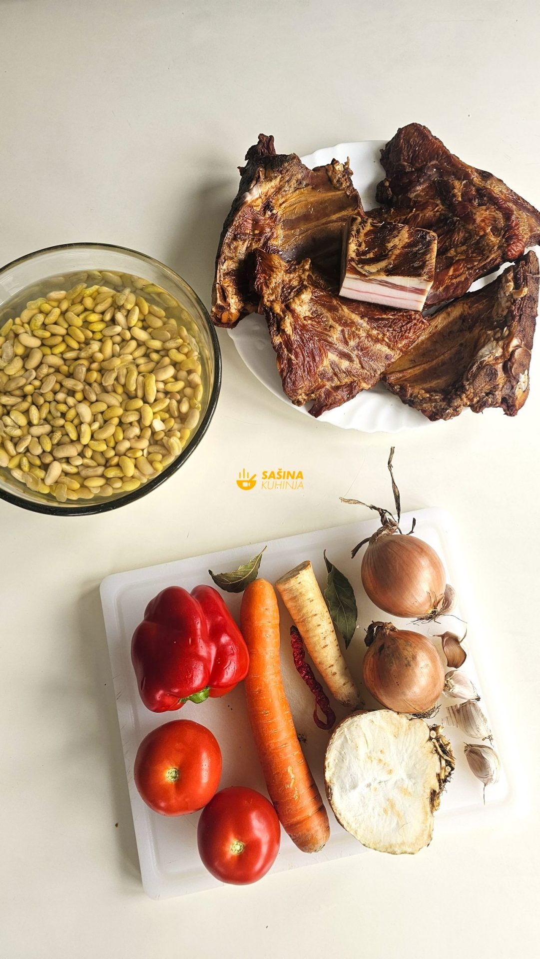- Dimljena svinsjka rebra. Umjesto mogu prsni vršci ili još pristupačnije dimljene svinjske kosti. Slanina ako imate