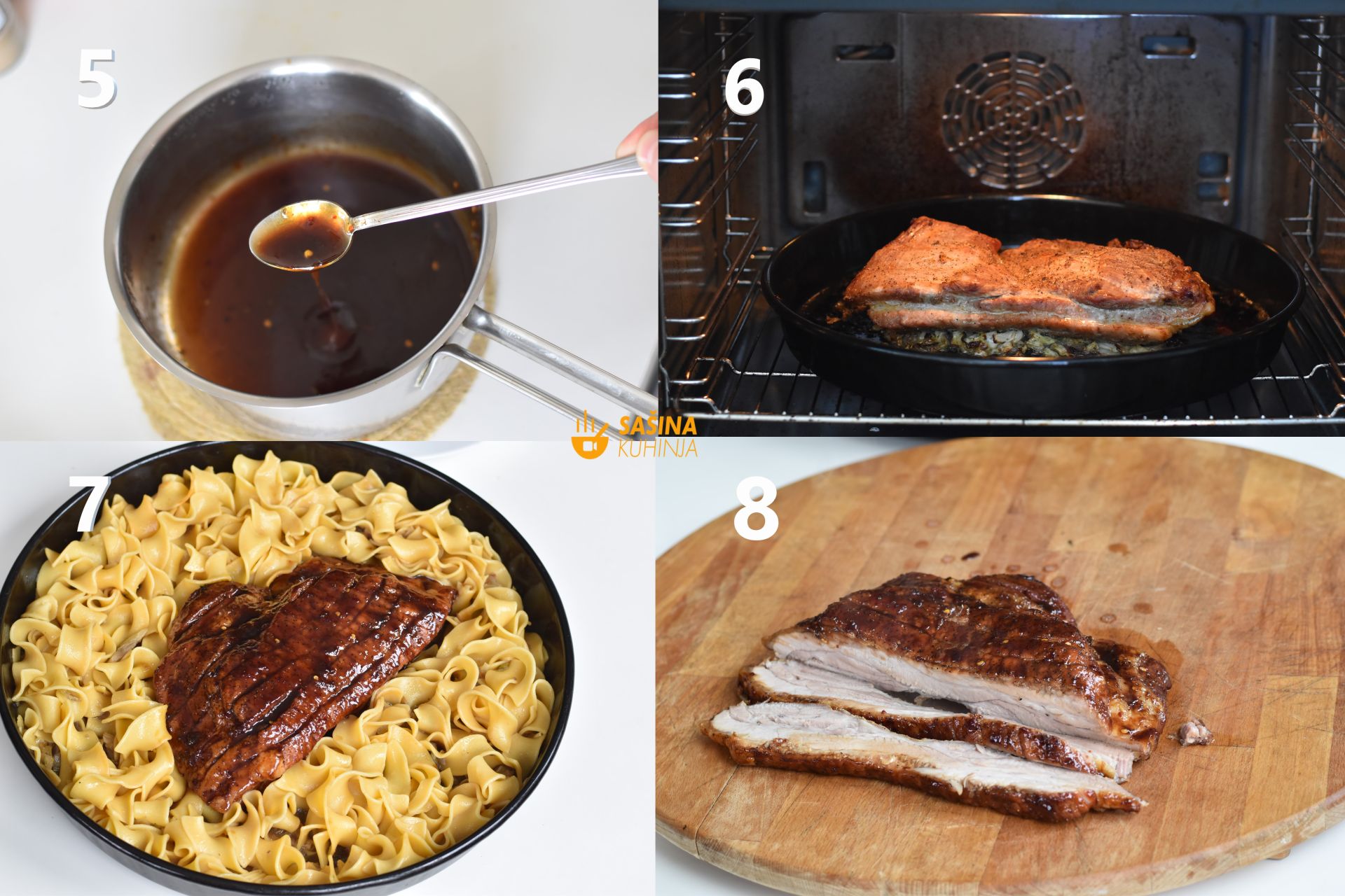 medena svinjska rebrica recept sa zapečenim širokim rezancima